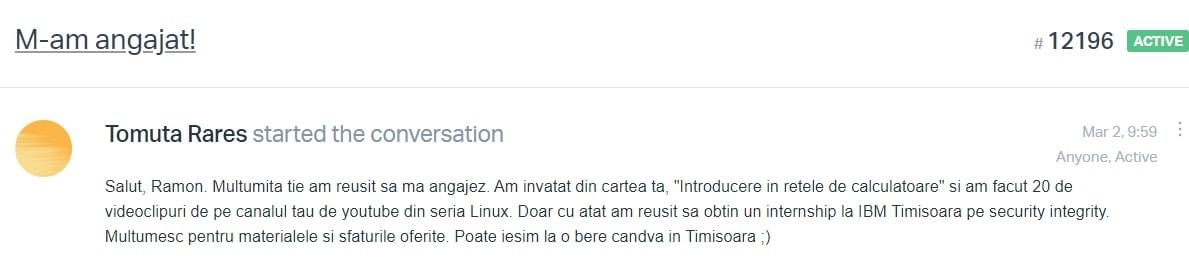 Acesta este motivul pentru care eu am ales sa dau o forma simpla si clara, cunostintelor pe care le-am obtinut in ultimii 14 ani si sa le pun intr-un format care sa-i ajute pe cei care doresc o cariera in IT, sa inceapa si sa reuseasca.